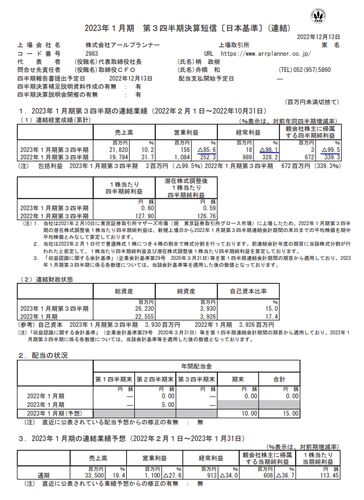 アールプランナー 2023年1月期第3四半期決算短信 9月8日に通期業績予想を下方修正していたので、第3四半期決算の損益の進捗状況がこんなに悪いとは思っていませんでした。 保有銘柄 アールプランナー Recovery International T.…