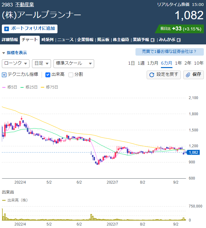 先週の木曜日の決算と通期業績予想の下方修正の発表を受けて、金曜日と今日とで、アールプランナーに見切りをつけた人とアールプランナーを入手するチャンスと考えた人との売買という名の入れ替えがありました。