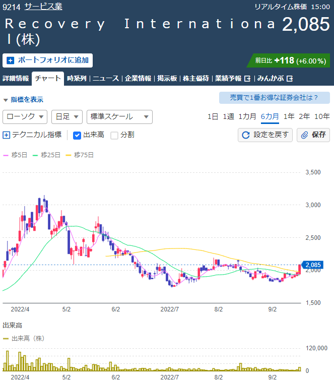 私のメモが正しければ、会社四季報2022年夏号と秋号を比較して、予想売上高または予想純利益が増額となったのは、私の持ち株の中では、Recovery Internationalの純利益と、サクシードの売上高だけでした。