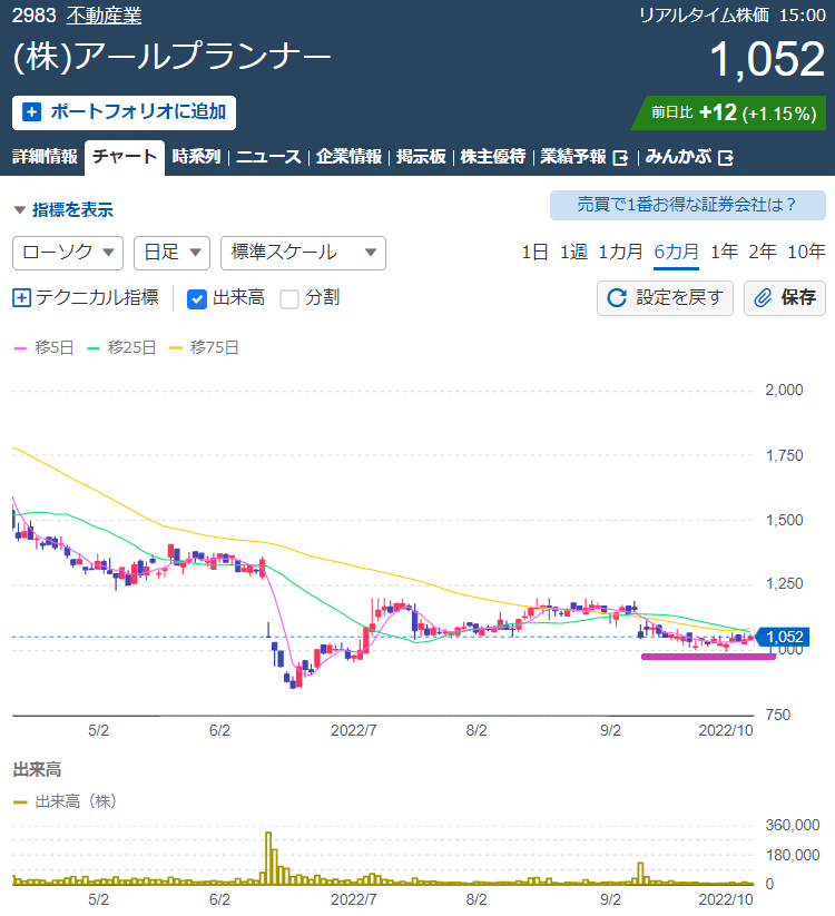 2022-10-07 防波堤 出典 ヤフーファイナンス この辺りに壁をつくって欲しいです。 保有銘柄 アールプランナー T.S.I Recovery International アジアクエスト サクシード ネオマーケティング 今日も売買なしです。 TOPIX -0.82% マイファンド +0.33% マイファンド対TOPIX 84勝103敗(2022年) 株式投資をする際には、必ず自分で確認して、自己責任でお願いします。